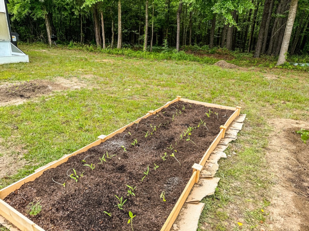 I prepared to start my Three Sisters garden by making a large raised out of cedar. I filled it with vegan-friendly soil and natural soil amendments. In this bed, I planned to plant, Stowell Evergreen Sweet Corn, Spaghetti Squash, Green Stripe Winter Squash, Blue Lake Pole Beans, sunflowers, and bee balm. The sunflowers and bee balm are great for bringing in bees to pollinate the corn and they also help keep birds away from the veggies. I also hand tilled a bed in the ground in which I amended with natural soil amendments. In this bed I planned to plant Trucker’s Favorite White Corn, Hyacinth Beans, Pinto Beans, Green Tint Scallop Squash and sunflowers.